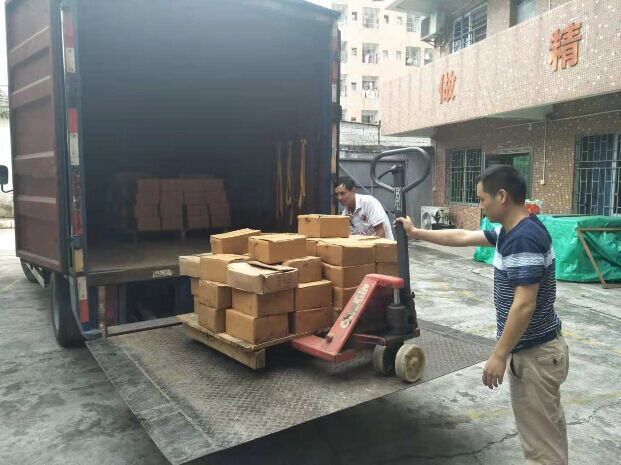 一卡板一卡板的磁铁正在装进货车中,准备发往到客户公司。